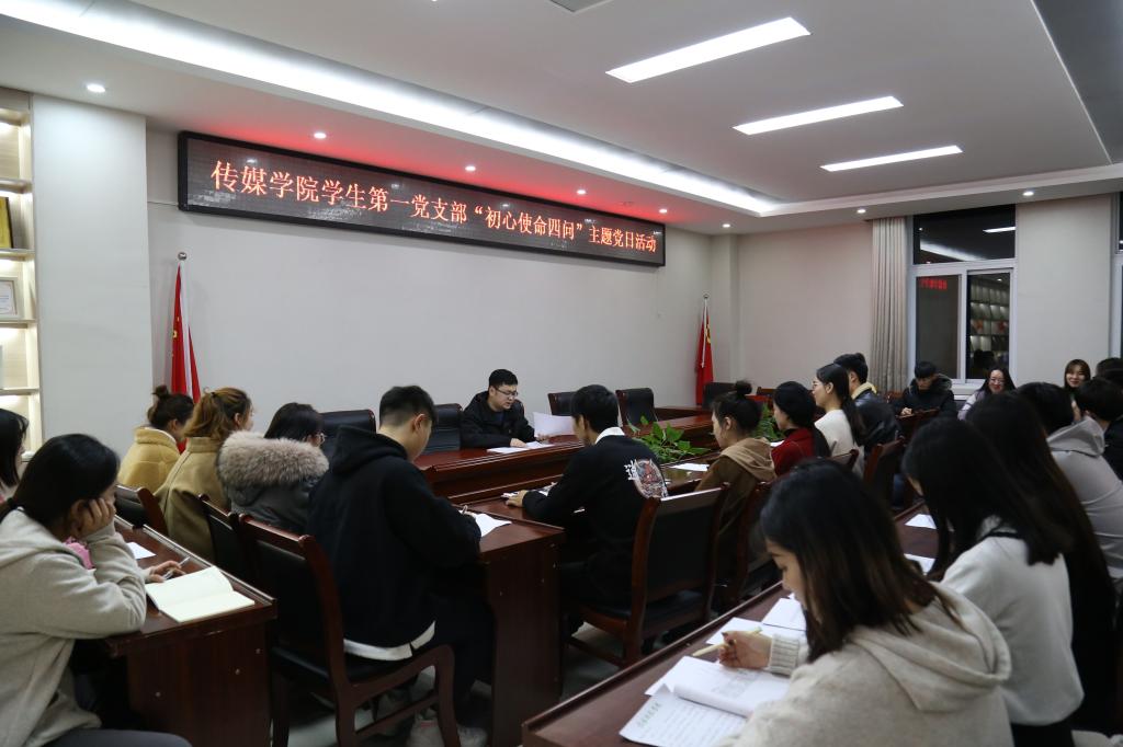 为推动“不忘初心、牢记使命”主题教育取得实效,11月18日下午学生第一党支部在ok138cn太阳集团古天乐党员之家举行“初心使命四问”主题党日活动。