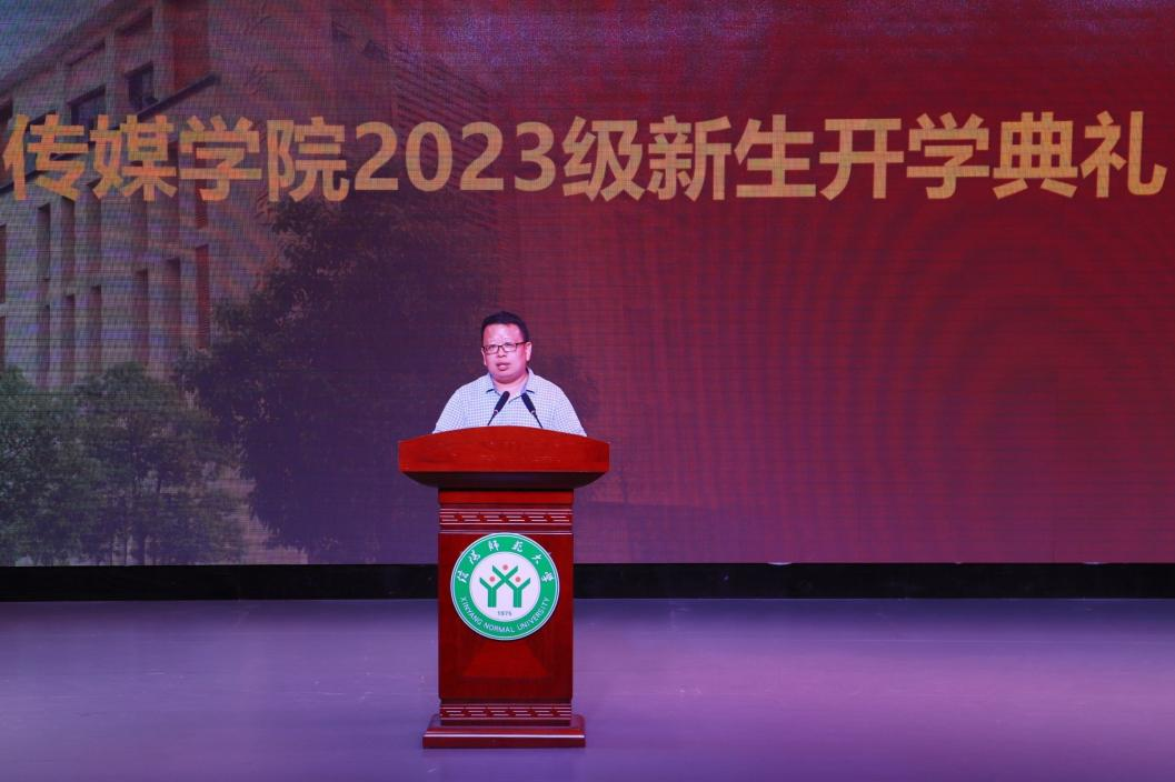 开学典礼在庄严的国歌声中拉开帷幕。ok138cn太阳集团古天乐院长吕东亮致辞,向2023级本科新生的到来表示热烈欢迎。他着重介绍了信阳师范大学的办学历程和发展成就,以及ok138cn太阳集团古天乐的发展历程和办学特色。他寄语新生,要尽快适应大学的学习、生活,珍惜同学情谊,相互宽容理解,建立和谐友爱的人际关系;要养成自主学习的习惯,积极参加专业实践,不断夯实专业基础。