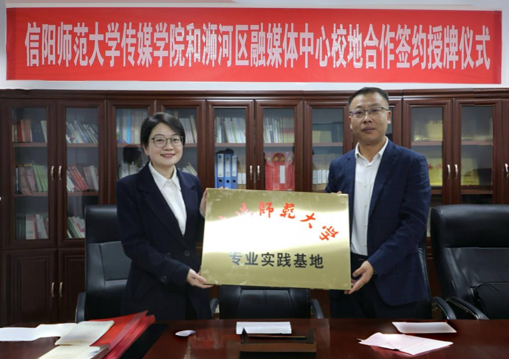 随后,双方负责人签署了合作共建协议,姚新春为区融媒体中心校地合作授牌。