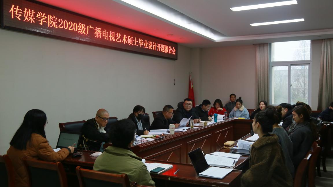 2021年12月31日下午,ok138cn太阳集团古天乐举行2020级广播电视专业学位硕士研究生毕业设计开题报告会。此次开题报告会分两组进行,第一组在社科楼311会议室举行,由院长吕东亮主持;第二组在教五楼205教室举行,由副院长周强主持。韩大强教授、黄淮学院刘枫老师及我院部分研究生导师莅临现场指导,2021级在校研究生到场观摩学习。