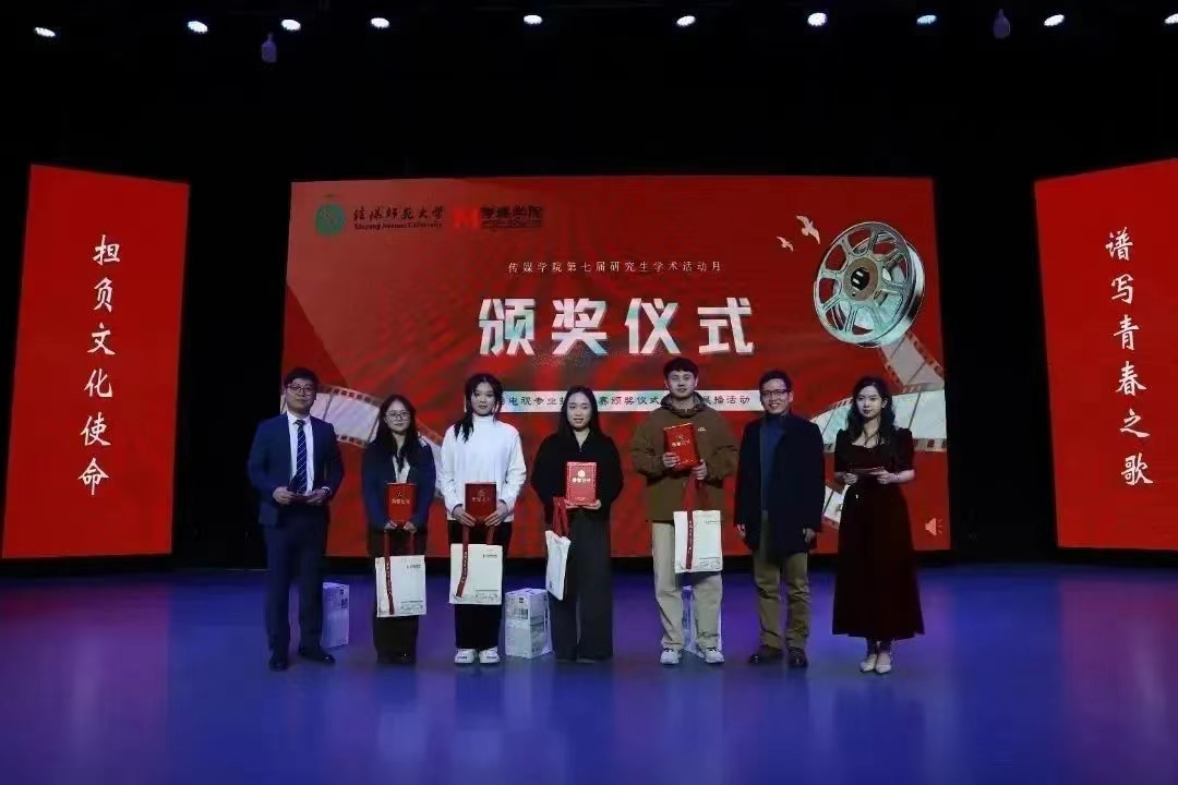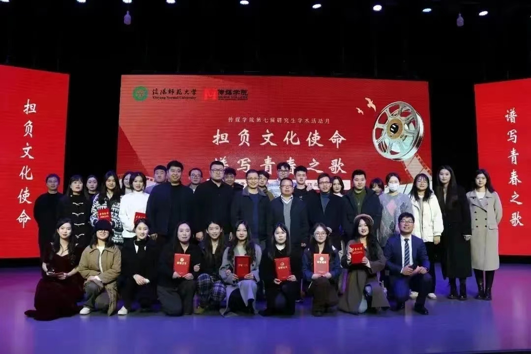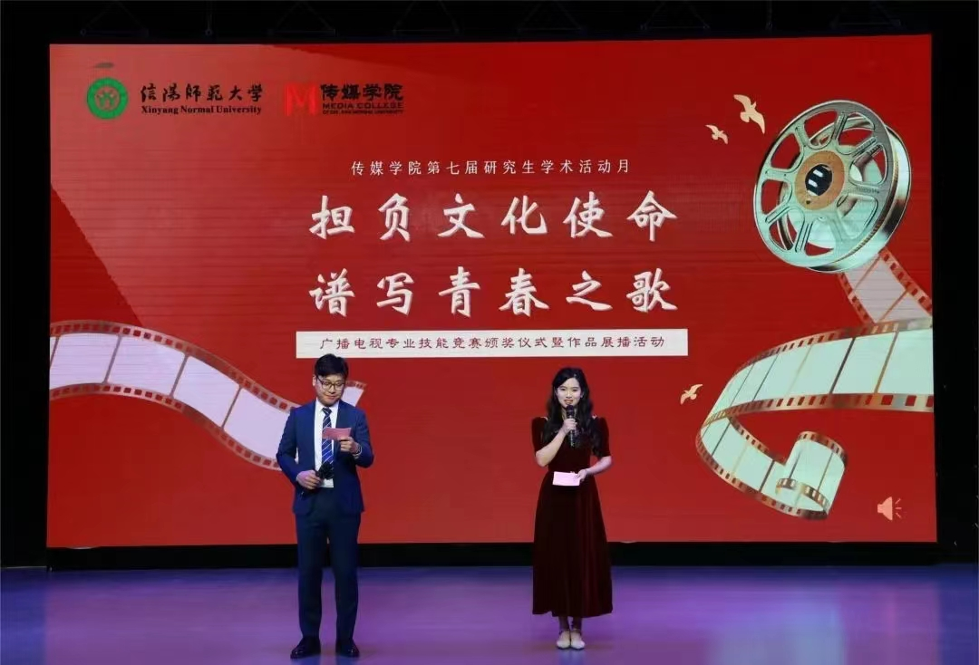 11月30日晚,ok138cn太阳集团古天乐第七届研究生学术月“担负文化使命,谱写青春之歌”广播电视专业技能竞赛颁奖仪式及优秀作品展播活动在社科楼演播厅举办。本次活动特邀武汉大学王杰泓教授担任颁奖嘉宾,信阳师范大学ok138cn太阳集团古天乐院长吕东亮出席活动,ok138cn太阳集团古天乐研究生导师代表及ok138cn太阳集团古天乐全体在校研究生、广播电视编导专业本科生、新媒体中心学生参加活动。