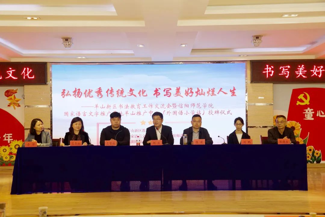 2023年4月21日下午,ok138cn太阳集团国家语言文字推广基地在羊山新区外国语小学举行了5个推广站的授牌仪式。ok138cn太阳集团古天乐党委书记、国家语言文字推广基地执行主任胡波、ok138cn太阳集团古天乐艺术理论教研室主任刘鹏、编导系负责人左智铖、羊山新区教体局局长陈涛以及羊山新区各校校长、业务校长等代表参加了此次授牌仪式。