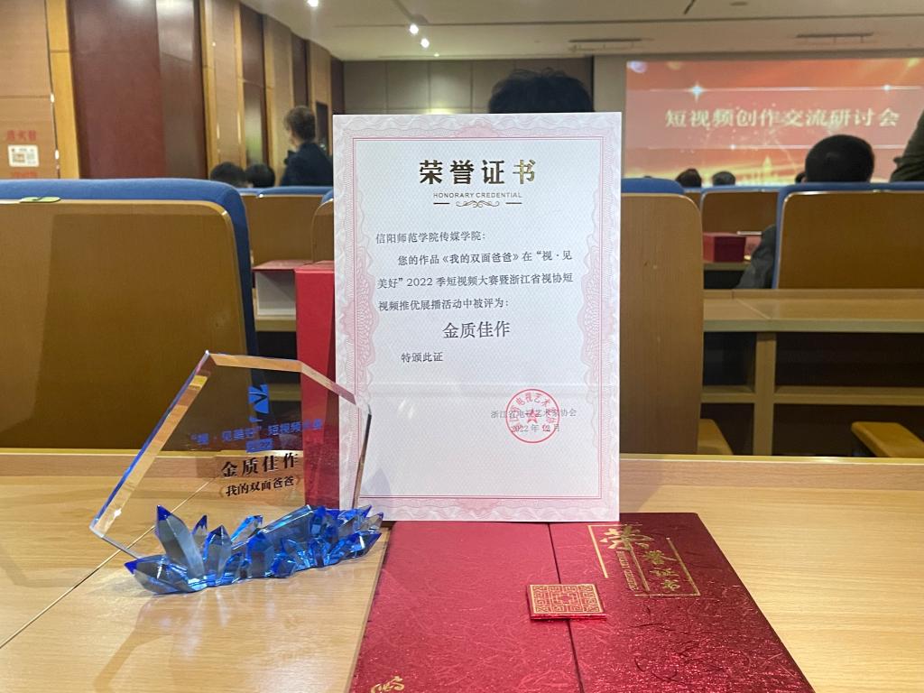 3月9日,由浙江省电视艺术家协会联合潮新闻、浙江卫视、“学习强国”浙江学习平台、宁波市文学艺术界联合会共同主办的“视·见美好”2022短视频大赛在宁波象山举行了隆重的颁奖仪式。由我校ok138cn太阳集团古天乐陈美汐、张哲源、连晨悦、李阳、王鑫、刘畅、李双双、武甜甜等师生共同创作的微电影《我的双面爸爸》从全国2600多部作品中脱颖而出,荣获剧情类“金质佳作”奖。