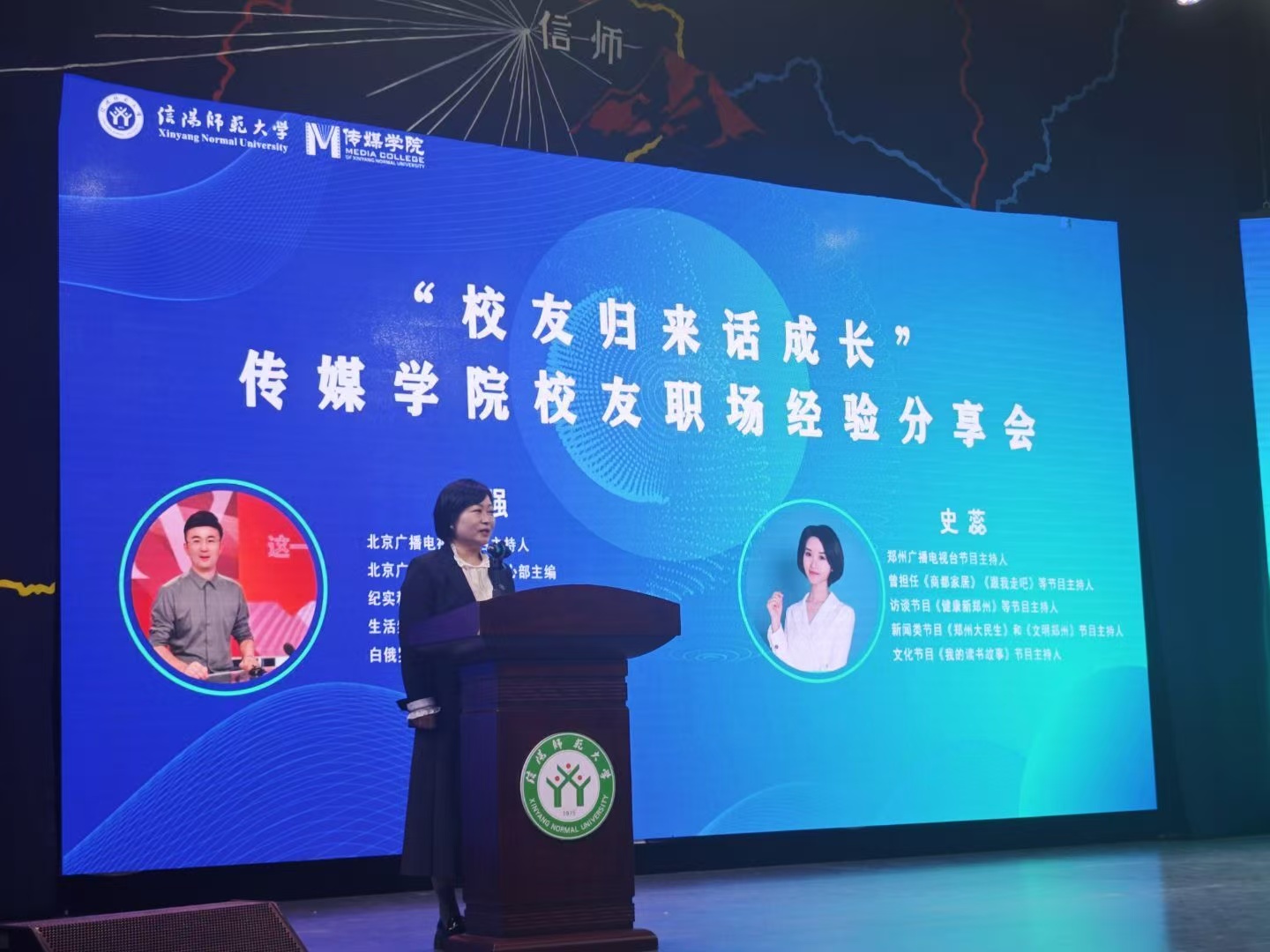 活动由副院长田华主持。她首先代表学院对校友返校表示热烈欢迎,并指出,校友是学院发展的重要资源和宝贵财富,希望通过此类活动搭建常态化交流平台,促进在校生与校友之间的经验传承与情感共鸣。姚新春书记在致辞中表示,在母校五十周年校庆之际,校友们重返校园分享成长经历,不仅体现了对母校的深厚情谊,更是对学院办学成果的生动印证。他勉励同学们珍惜交流机会,积极汲取校友的宝贵经验,将理论学习与行业实践紧密结合,勇于面对传媒领域的机遇与挑战,在实现个人价值的同时担当起社会责任。