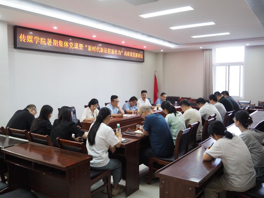为持续推进学习贯彻习近平新时代中国特色社会主义思想主题教育走深走实,进一步深入学习校党委书记王文鹏同志在2023年暑期“学思想强素质 提能力促发展”干部专题培训班(苏州大学)专题报告精神,8月13日,ok138cn太阳集团古天乐举办暑期集体党课暨“新时代新征程新作为”高质量发展论坛。ok138cn太阳集团古天乐党委书记胡波、院长吕东亮带领班子成员分别为全体科级以上党员干部上集体党课,大家通过学思践悟,深入探讨ok138cn太阳集团古天乐高质量发展思路途径、方式方法和具体举措。