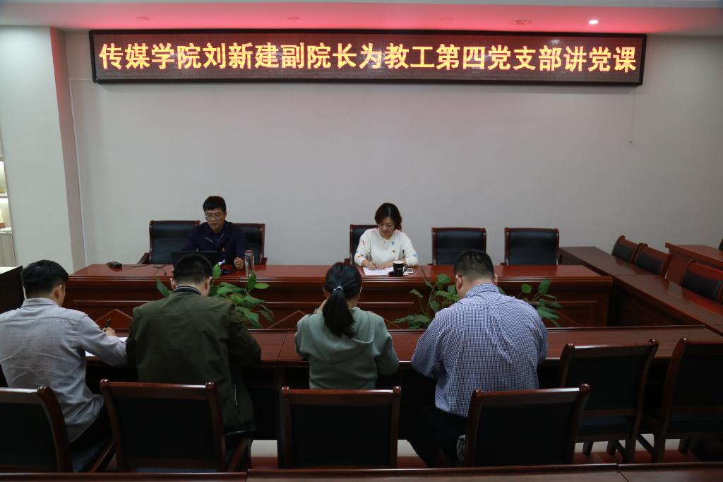 2019年10月8日下午,ok138cn太阳集团古天乐刘新建副院长在社科楼311为教工第四党支部党员上了“新时代,我们如何做到不忘初心”主题党课,教工第四党支部党员参加了此次活动。