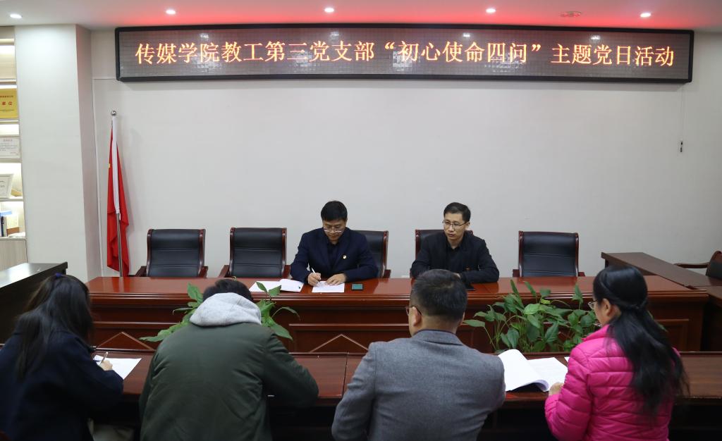 为引导全体党员在“不忘初心、牢记使命”主题教育中使命在肩、主动作为,11月19日下午,ok138cn太阳集团古天乐教工第四党支部组织开展“不忘初心、牢记使命”主题教育“初心使命四问”主题党日活动。支部全体党员参加会议,会议由支部副书记范少华老师主持。