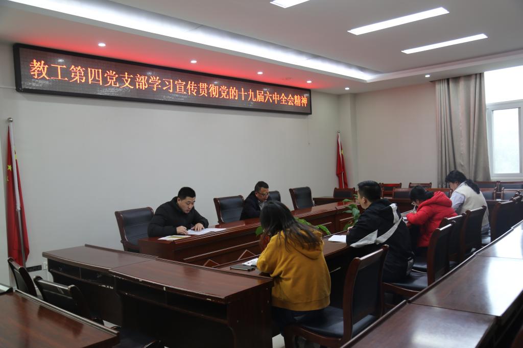 教工第四党支部书记段金龙带领大家学习了中国共产党第十九届中央委员会第六次全体会议会议公报,深入理解了百年历程中的四个“伟大飞跃”;习近平新时代中国特色社会主义思想“是中华文化和中国精神的时代精华,实现了马克思主义中国化新的飞跃”;两个“确立”对新时代党和国家事业发展、对推进中华民族伟大复兴历史进程具有决定性意义;新时代发展取得的成就;中国共产党百年奋斗的五方面历史意义;中国共产党百年奋斗的十条历史经验。通过学习,大家一致认为,十九届六中全会是党在重要历史关头召开的一次具有重大历史意义的会议,具有很强的现实意义。