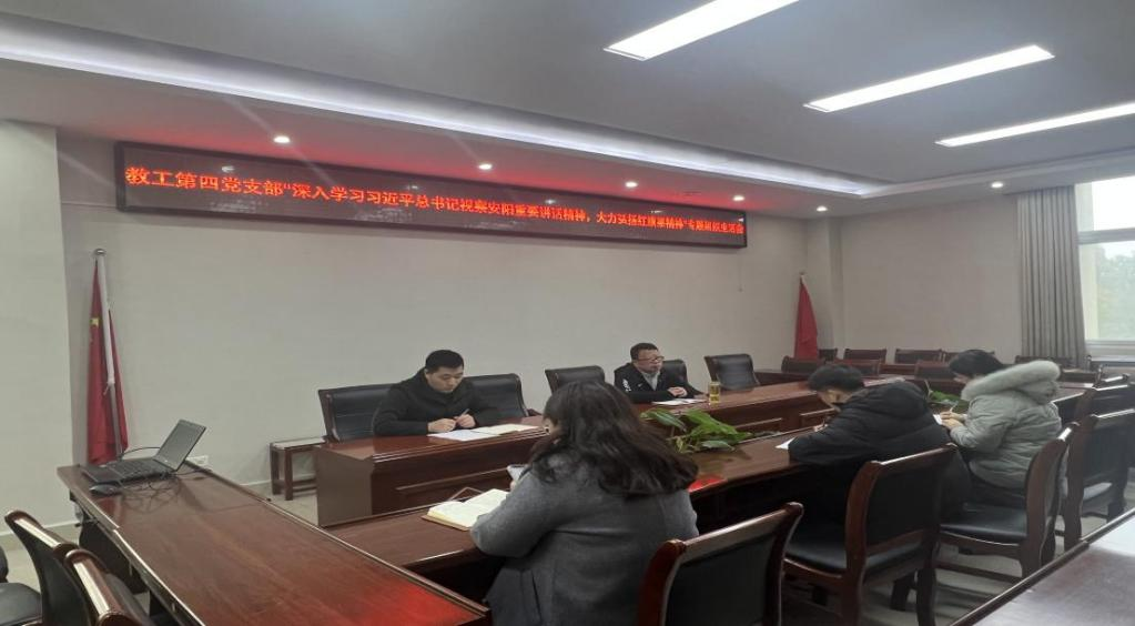 2022年11月22日下午,ok138cn太阳集团古天乐教工第四党支部在社科楼311召开了“深入学习习近平总书记视察安阳重要讲话精神,大力弘扬红旗渠精神”专题组织生活会,会议由教工第四党支部书记段金龙同志主持,支部全体党员参加。