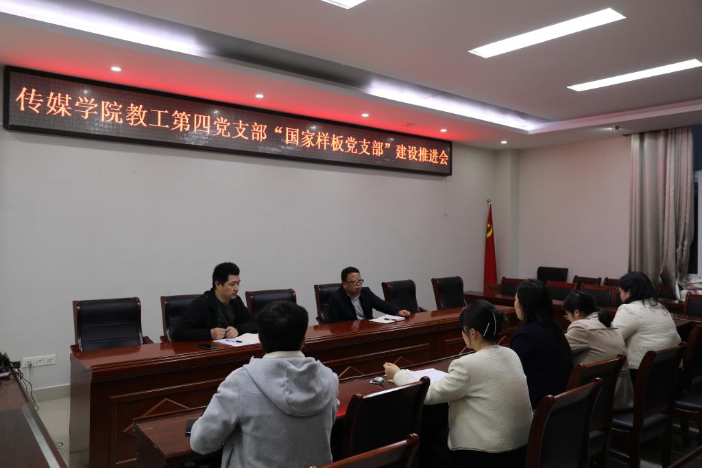 10月29日,ok138cn太阳集团古天乐教工第四党支部在社科楼311会议室举行“国家样板党支部”推进会,会议由支部书记段金龙主持,教工第四党支部全体党员参加。