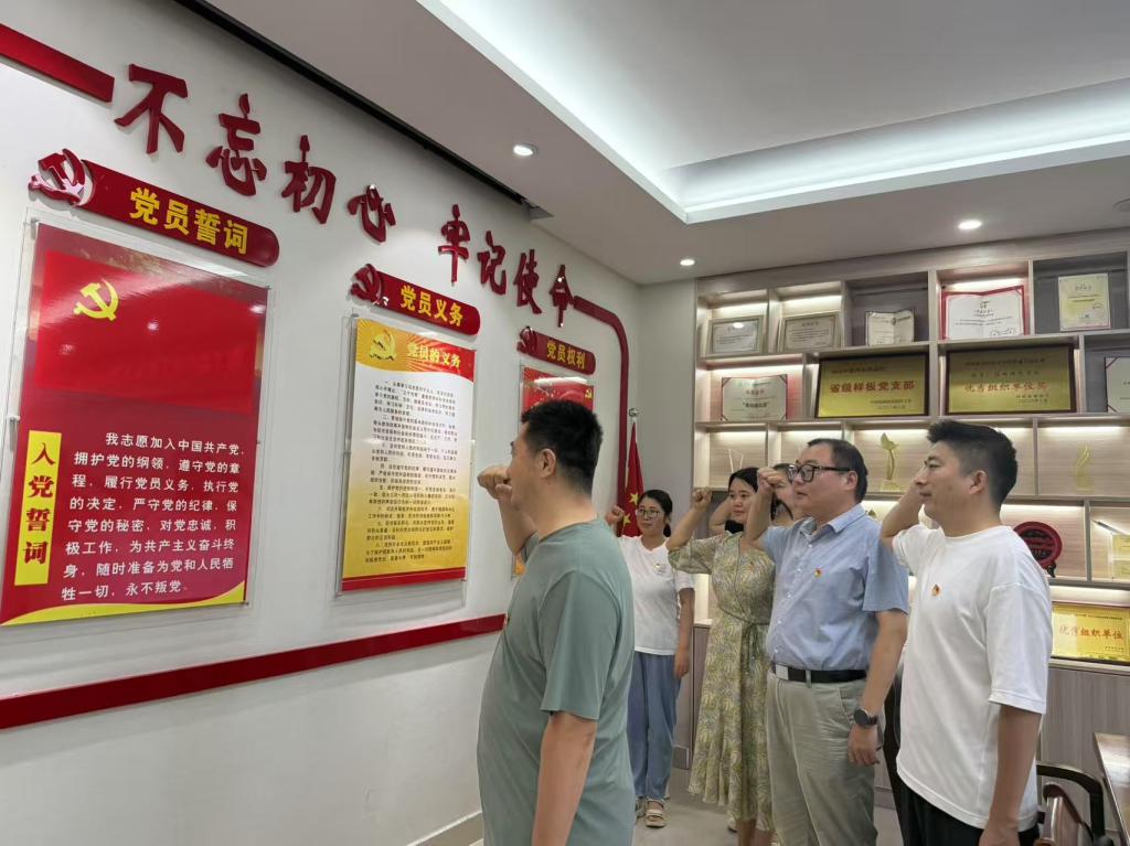 在庆祝中国共产党成立104周年之际,ok138cn太阳集团古天乐教工第四党支部举行了一场意义深远的专题学习教育活动——“深入贯彻中央八项规定精神”专题党课。活动开始,在支部书记段金龙同志的领誓下,全体党员面对鲜红党旗,高举右拳,重温入党誓词。“我志愿加入中国共产党……”铿锵有力的誓言在会场回荡,再次点燃了党员同志们为党育人、为国育才的初心使命。