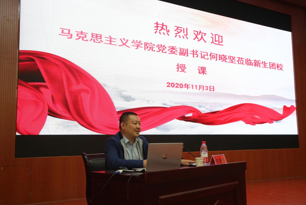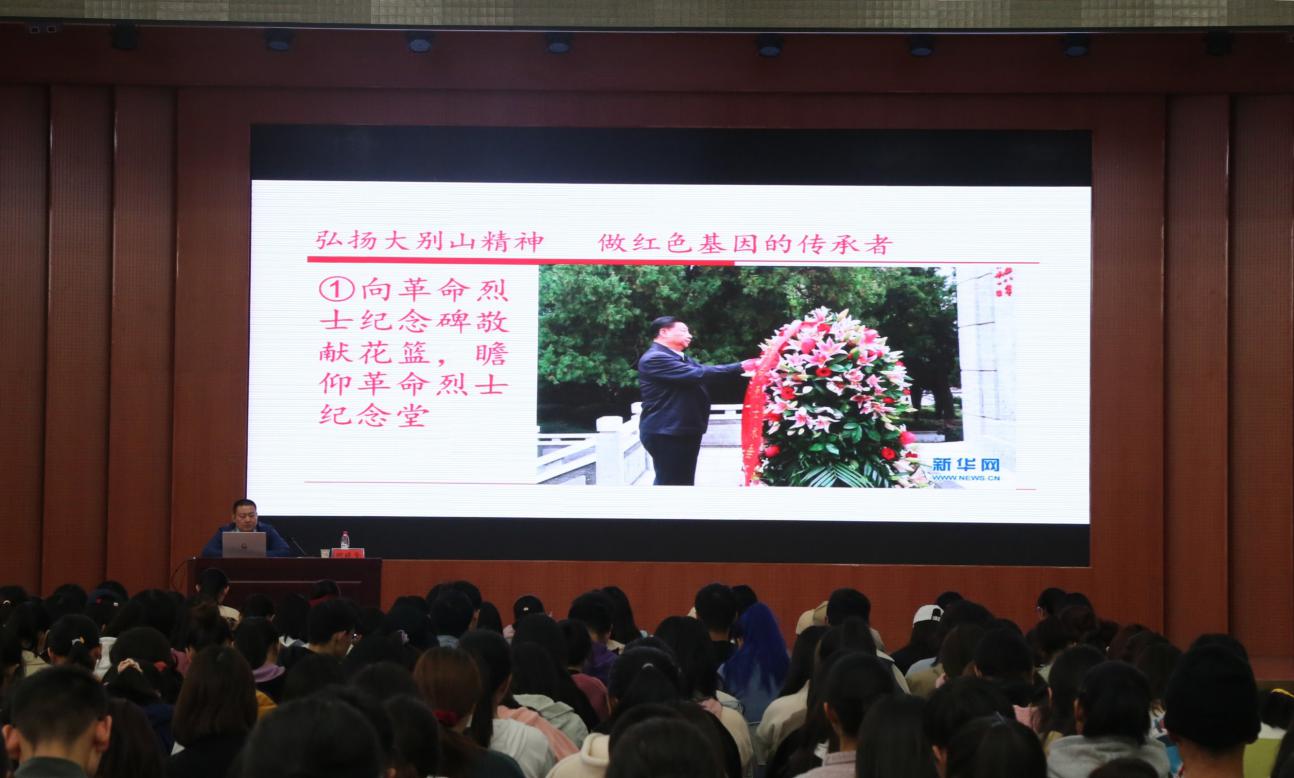 11月3日下午,ok138cn太阳集团古天乐在逸夫楼报告厅举办“弘扬大别山精神,做红色基因的传承者”新生主题团课。此次团课由马克思主义学院党委副书记何晓坚老师主讲,2020级全体新生参加。