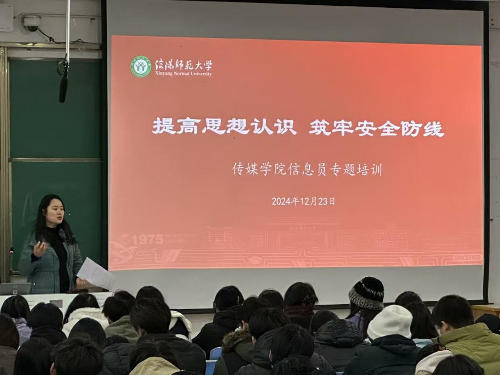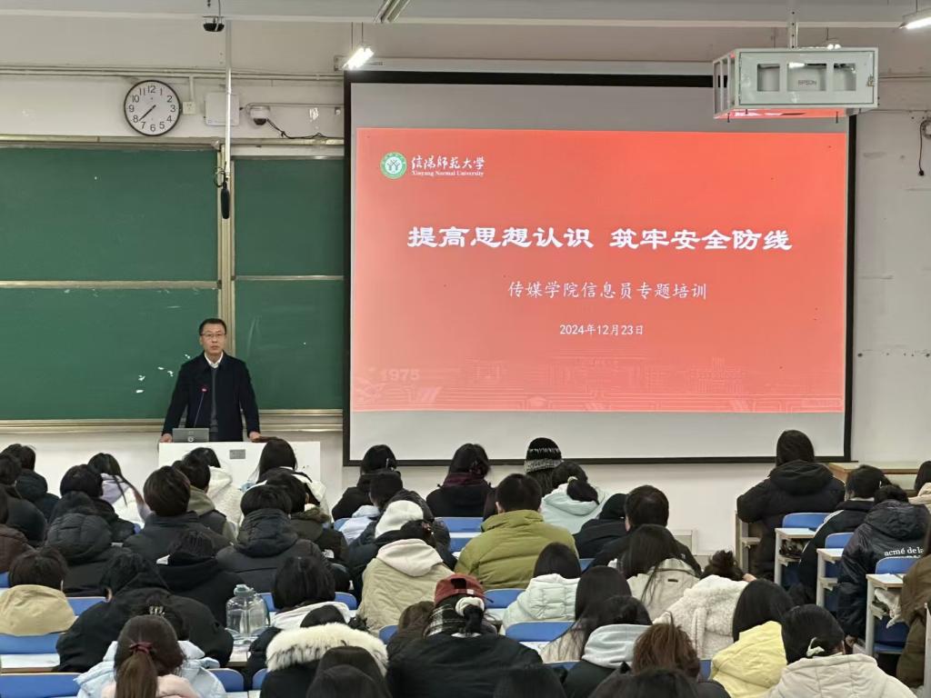 12月23日,ok138cn太阳集团古天乐在社科楼324教室开展“提高思想认识,筑牢安全防线”信息员专题培训会。ok138cn太阳集团古天乐党委书记姚新春,副书记余艳楷,ok138cn太阳集团古天乐分团委、学生会干部,新媒体、学生社团负责人及各班信息员、宿舍信息员参加。