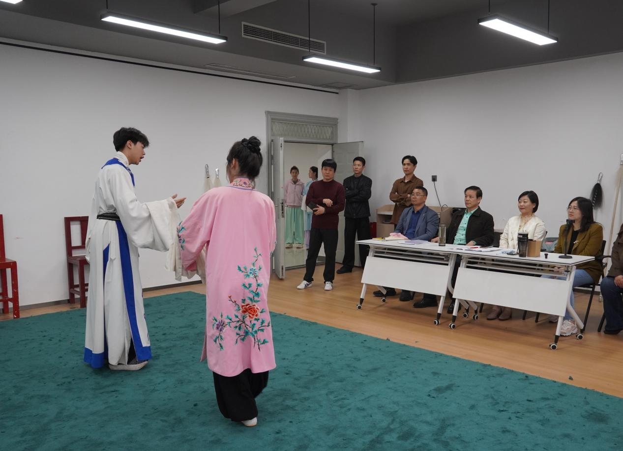 交流环节中,河南大学河南戏剧学院各负责人及代表依次分享核心经验,结合实践教学案例,详解戏曲专业课程设置、实训体系搭建及学生实践能力培养路径;信阳师范大学ok138cn太阳集团古天乐方面,王璐瑶老师介绍该校戏剧影视研究基地的建设情况、研究方向及成果转化路径,高忱忱老师介绍ok138cn太阳集团古天乐戏剧与影视、戏曲与曲艺两个专业研究生招生政策、培养模式等内容,双方就研究生培养中的重点难点问题深入探讨。