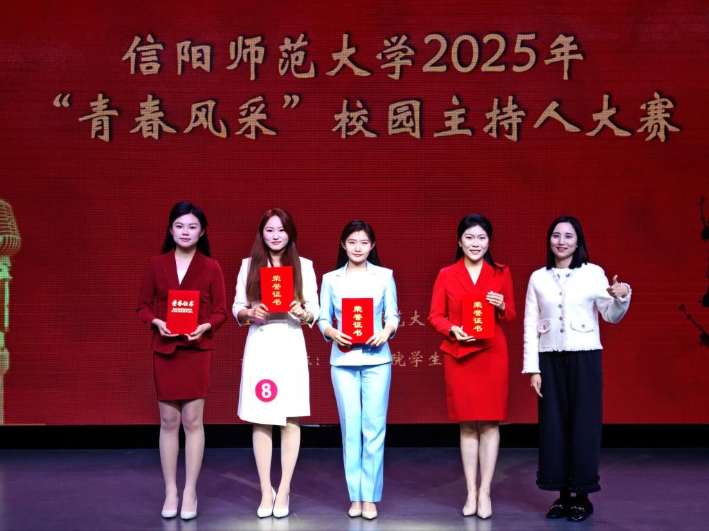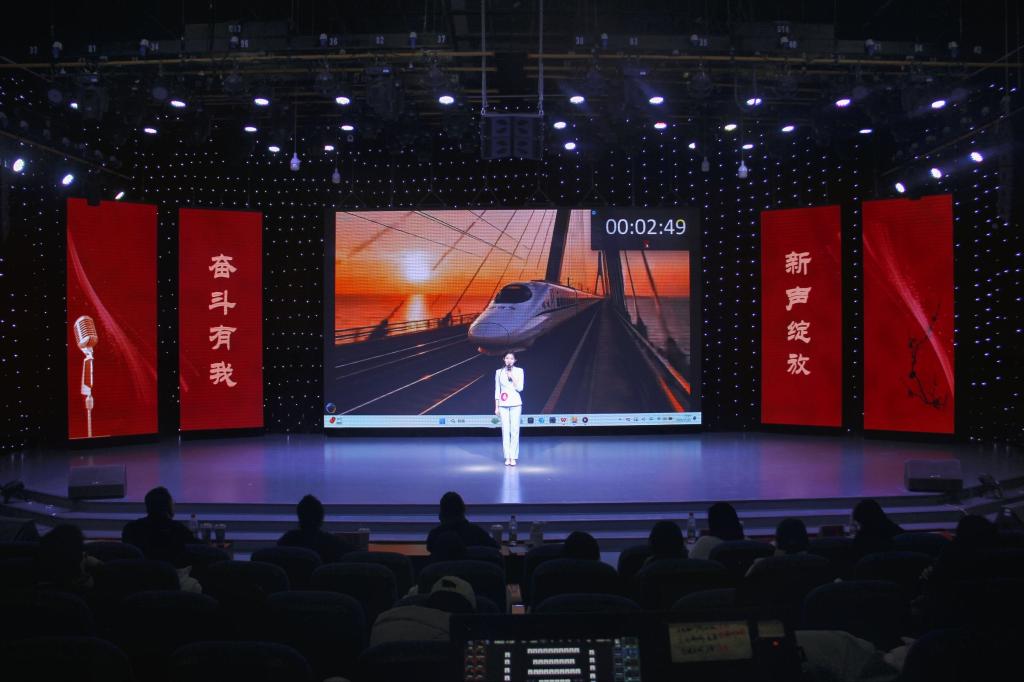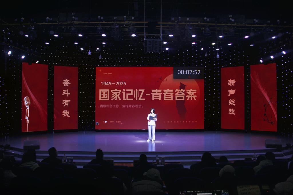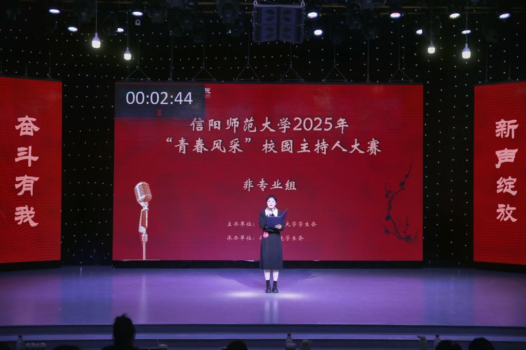 首先登台的是非专业组选手,他们以创意为笔,书写热爱篇章。自备稿件朗诵时,文学院马林青咏诵家国情怀,商学院邢诗宜诠释大别山精神,教育科学学院李昱霏借文字传递成长力量。自备主持环节,医学院董航兵带来的《大美许昌》,带领观众“云游”许昌,教育科学学院姜可欣在主持《历史运动会》节目中把投壶、蹴鞠等传统运动讲得妙趣横生。多元表达让赛场新意盎然。