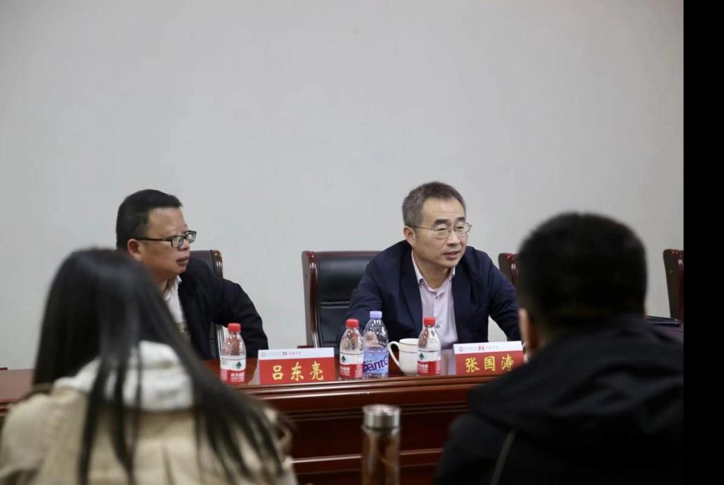 讲座结束后,张国涛教授与学院教师代表、广播电视专业研究生在学院会议室对学科期刊发展现状及教材出版等问题展开交流探讨,并针对师生提出问题一一解答。