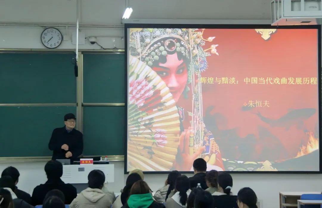 会上,朱教授强调在中华人民共和国成立后,戏曲和社会情况一样,发生了巨大变化。当代戏曲的发展跌宕起伏,既取得了令人瞩目的成绩,也经历了曲折和坎坷。目前,戏曲是国家重点保护的非物质文化遗产,但面临着与影视等现代艺术的激烈竞争,戏曲艺术传承、创新与发展的任务非常艰巨且光荣。