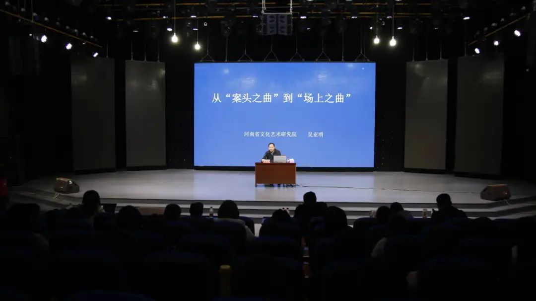 2024年12月2日上午,河南省艺术研究院院长吴亚明受河南省人文社科重点研究基地中原戏剧影视文化研究中心邀请,在信阳师范大学社科楼演播厅开展主题为《从“案头之曲”到“场上之曲”》的学术报告,戏剧影视文学专业师生听取报告,报告由戏剧影视系主任段金龙主持。